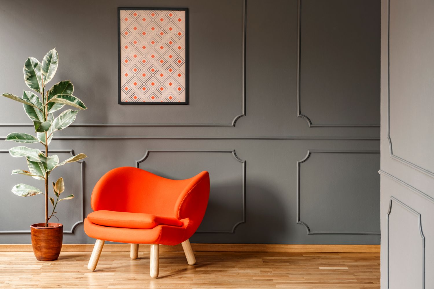 Les règles sont faites pour être transgressées. C’est pourquoi tu ne dois pas toujours suivre de manière rigide la règle empirique décrite ci-dessus. Observe d’abord ta pièce et regarde les autres objets d’aménagement que tu pourrais prendre en compte lors de l’accrochage des tableaux. Pour trouver la hauteur idéale, oriente-toi également vers les autres bords de ton appartement, comme les fenêtres, les portes, les meubles ou le sol. En effet, les proportions de tes tableaux jouent un rôle décisif pour un accrochage harmonieux et calme.